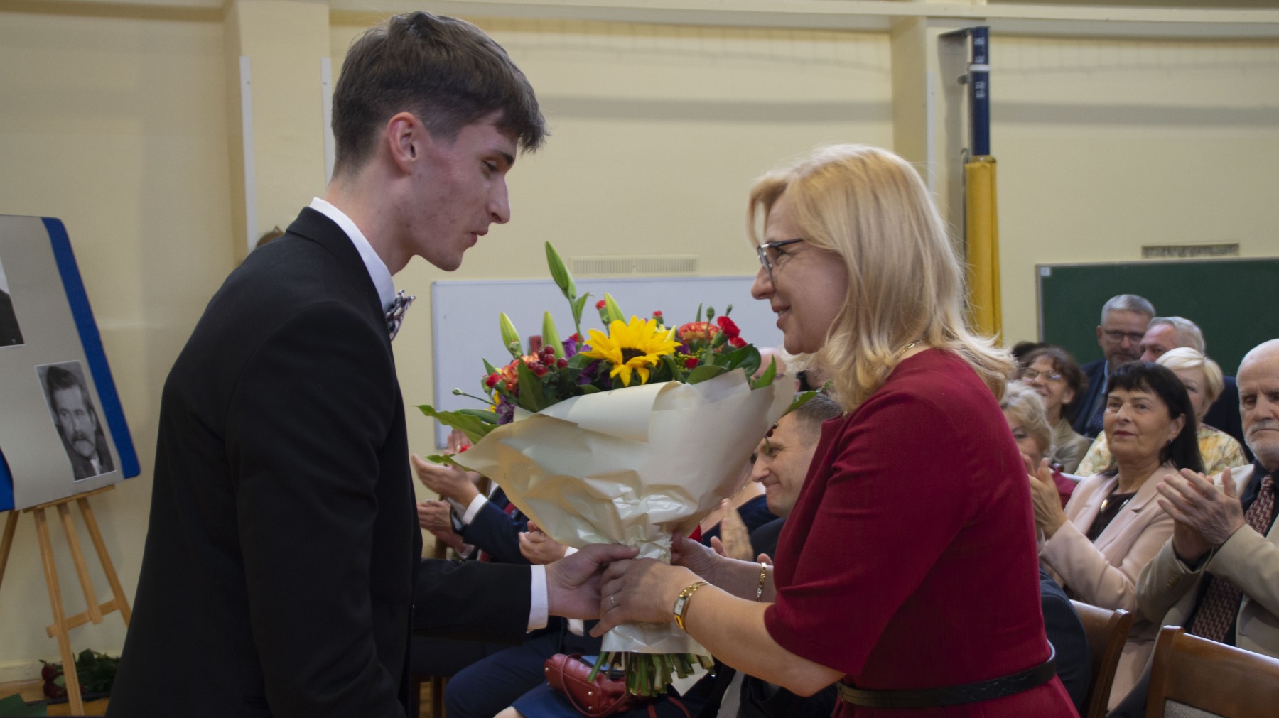 Na uroczystości, której gospodarzami byli Starosta Olkuski Pan Bogumił Sobczyk i Pani Dyrektor Irena Majda, obecnością zaszczycili nas m.in. przedstawiciele władz państwowych, wojewódzkich i powiatowych, radni Rady Powiatu, dyrektorzy instytucji oraz jednostek powiatowych, dyrektorzy i nauczyciele szkół ponadpodstawowych, przedstawiciele związków zawodowych, obecni i emerytowani nauczyciele naszego liceum, pracownicy oświaty, przedstawiciele Rady Rodziców, a także Uczniowie.