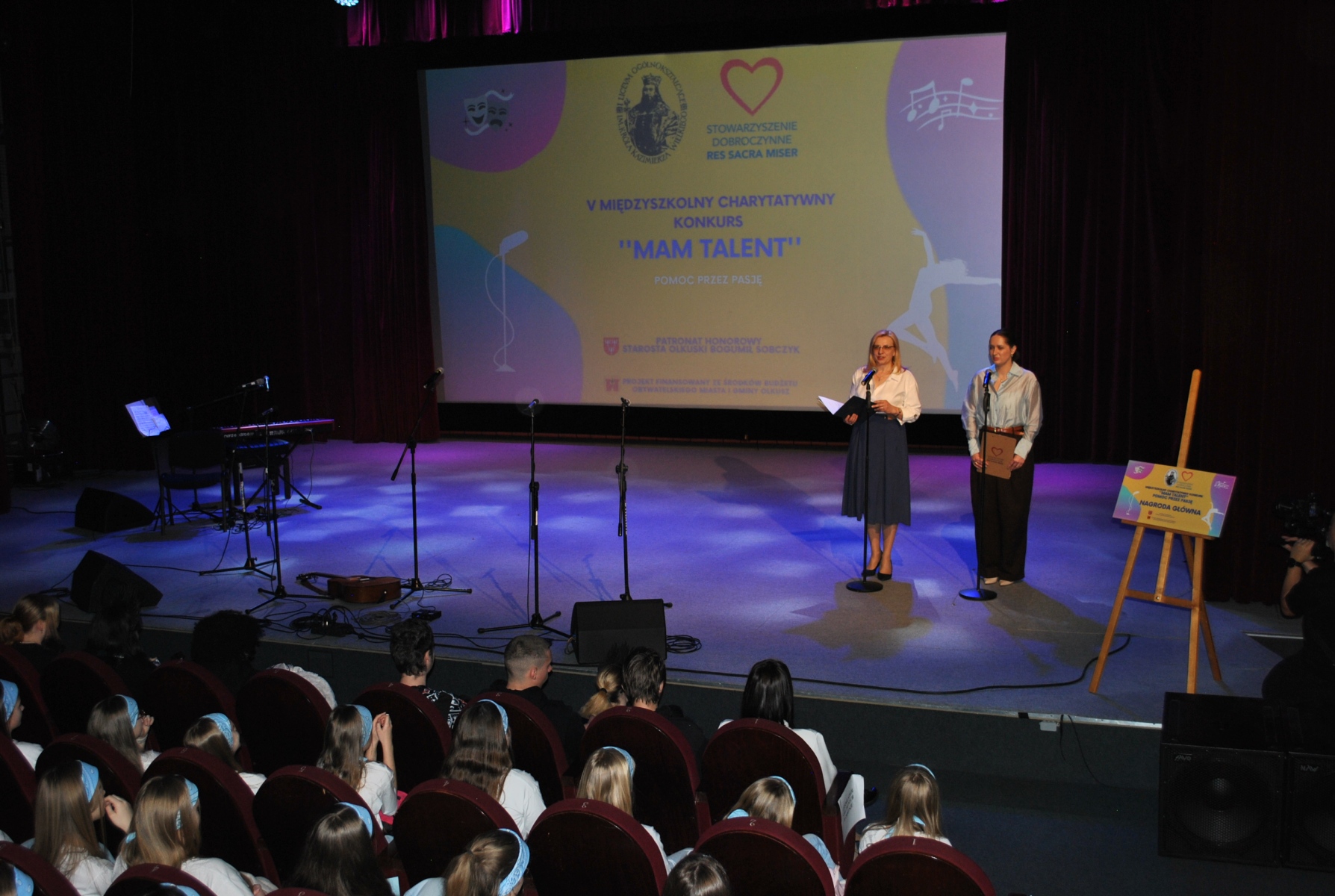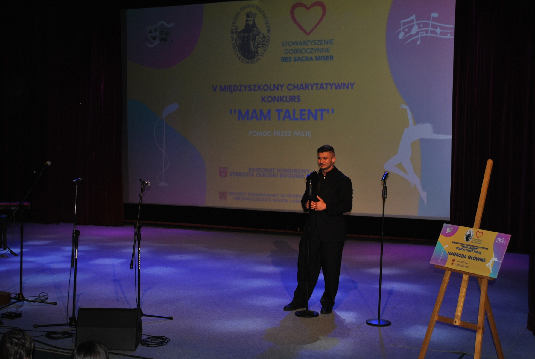 W czwartek, 19 marca 2026r. w Miejskim Ośrodku Kultury w Olkuszu. odbył się jubileuszowy – V Międzyszkolny Charytatywny Konkurs „Mam Talent”– POMOC PRZEZ PASJĘ. Organizatorem wydarzenia było I Liceum Ogólnokształcące im. Króla Kazimierza Wielkiego we współpracy ze Stowarzyszenie Dobroczynne „Res Sacra Miser” pod patronatem honorowym Starosty Olkuskiego Bogumiła Sobczyka. Tegoroczny Konkurs ponownie sfinansowano ze środków Budżetu Obywatelskiego Miasta i Gminy Olkusz.