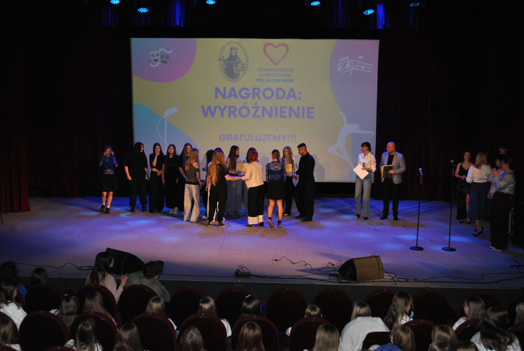 Dziękujemy za zaangażowanie i pomoc Pani Annie Deli, Prezes Stowarzyszenia Dobroczynnego „Res Sacra Miser”, Jurorom, Uczestnikom Konkursu, Dyrektorom Szkół, Pedagogom szkolnym, Opiekunom Szkolnych Kół Wolontariatu, Wolontariuszom, Uczniom występującym w Konkursie oraz gościnnie, Rodzicom oraz wszystkim obecnym i wspierającym to wydarzenie, m.in. całej Społeczności I LO – w organizowanych akcjach pozyskaliśmy kwotę 1000 zł na cel charytatywny.