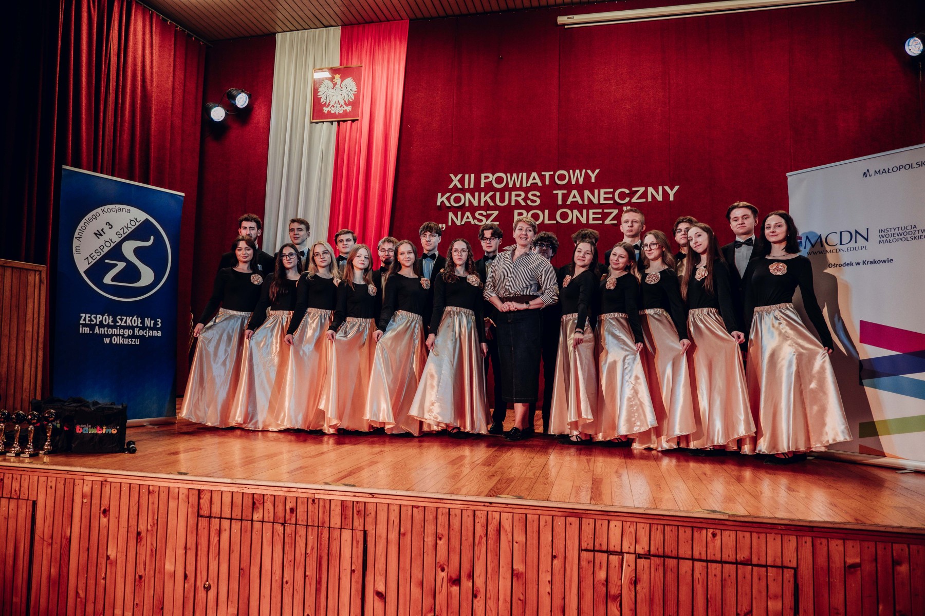 W poniedziałek 30 marca 2026 roku w Zespole Szkół Nr 3 w Olkuszu odbył się XII Powiatowy Konkurs Taneczny „Nasz Polonez” o Puchar Dyrektorów Szkół Olkuskich pod honorowym patronatem Starosty Powiatu Olkuskiego – Pana Bogumiła Sobczyka.