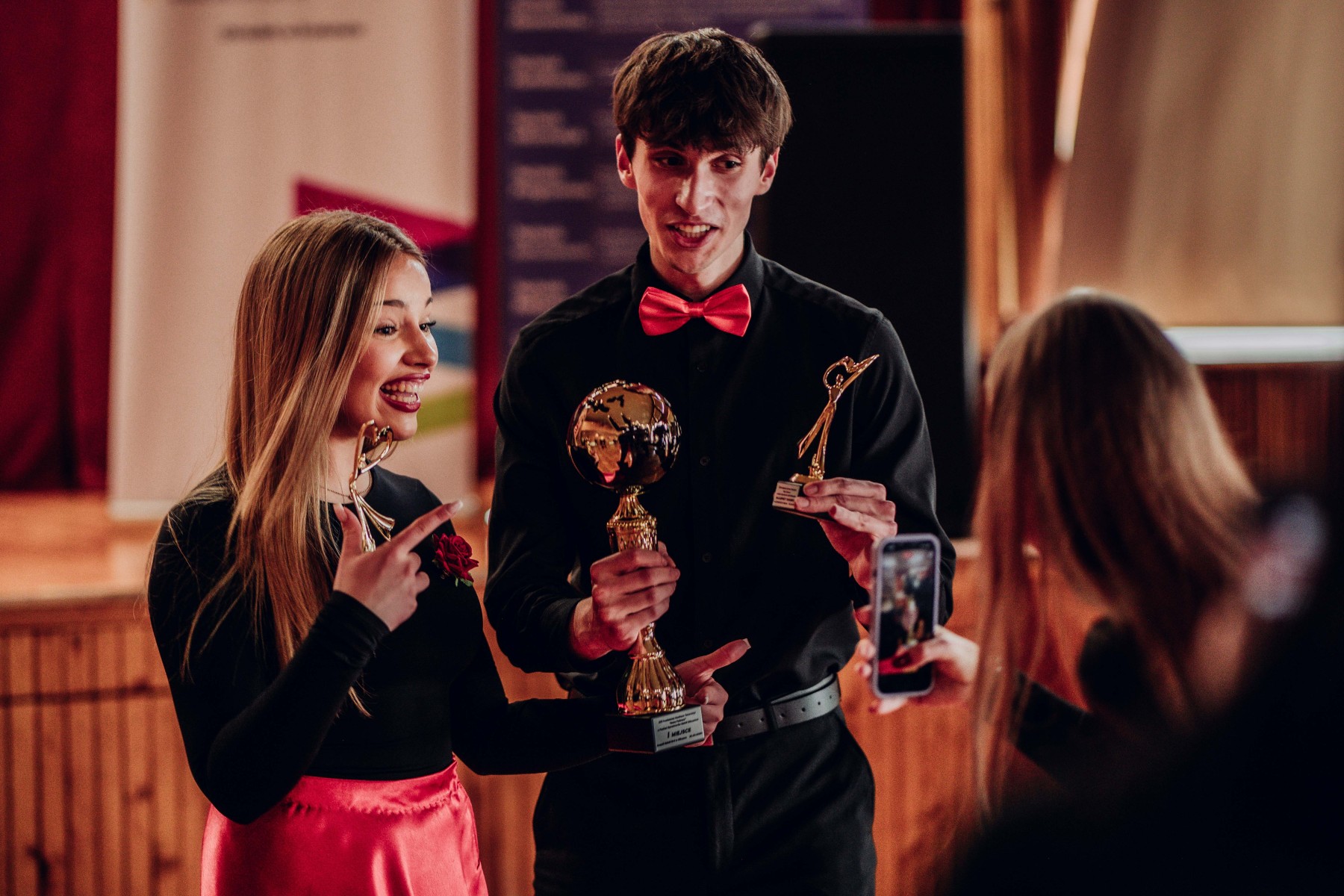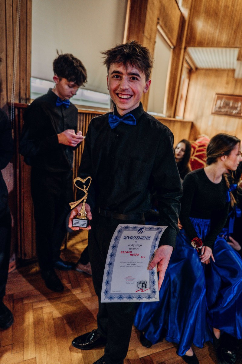 Najlepsi tancerze z każdej szkoły otrzymali pamiątkowe statuetki. Z naszej szkoły wyróżnieni zostali: Pola Wójcik i Albert Kajda.