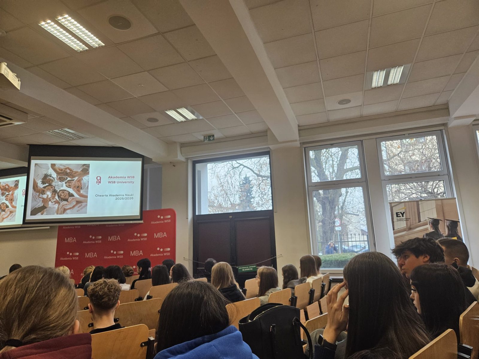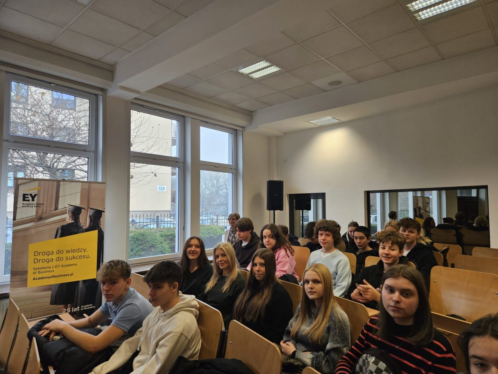 27 stycznia 2026 r. uczniowie klasy 1B i 3B o profilu ekonomiczno-prawnym uczestniczyli w wykładach z zakresu edukacji prawnej, zorganizowanych przez Akademię WSB w Dąbrowie Górniczej. Spotkanie było okazją do poszerzenia wiedzy z obszaru prawa. Młodzież miała okazję wysłuchać wykładów poświęconych mediacjom rówieśniczym oraz podstawowym zagadnieniom prawa, które są istotne w codziennym życiu młodych ludzi. Prelekcje prowadzili pracownicy naukowi Akademii WSB w Dąbrowie Górniczej , którzy w przystępny sposób przybliżyli uczniom tematykę rozwiązywania konfliktów, odpowiedzialności prawnej oraz praw i obowiązków obywatelskich. Uczniowie zostali również zapoznani z ofertą dydaktyczną uczelni, kierunkami kształcenia oraz perspektywami dalszej edukacji. Wydarzenie zostało zorganizowane w ramach inicjatywy „Miesiąc z Prawem”, której celem jest promowanie świadomości prawnej wśród młodzieży.